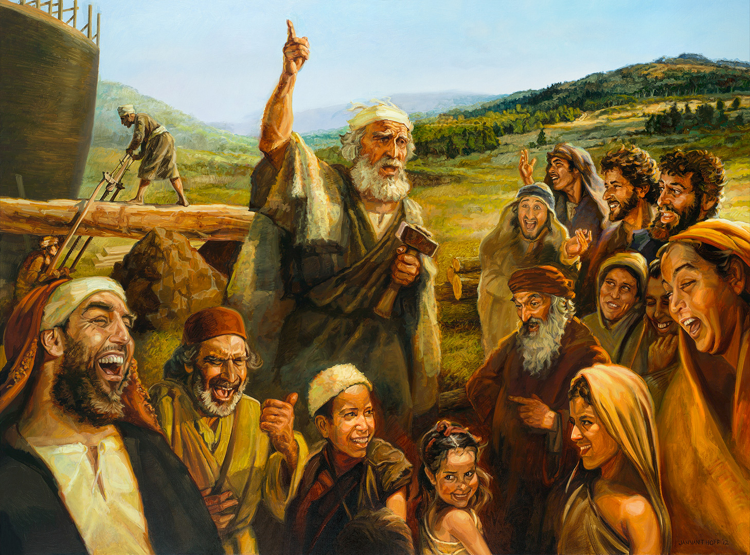 Przez wiele lat Noe pracuje nad arką. Ludzie, którzy widzą go budującego, prawdopodobnie się z niego śmieją, ponieważ