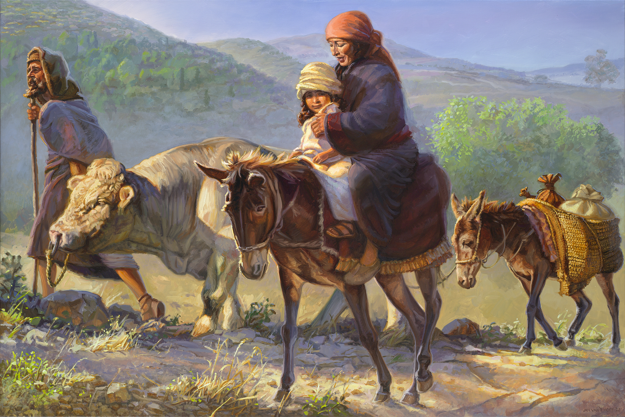 Obraz przedstawia Annę i Elkana, którzy wraz z Samuelem udają się do świątyni w Sylo. W pierwszych latach swojego życia był karmiony przez Annę. Teraz, zgodnie ze ślubowaniem Anny, odda go Panu, “zaprowadzę go, aby stanął przed obliczem Pana, i pozostanie tam na zawsze”. Zobacz 1 Księge Samuela 1, werset 22.