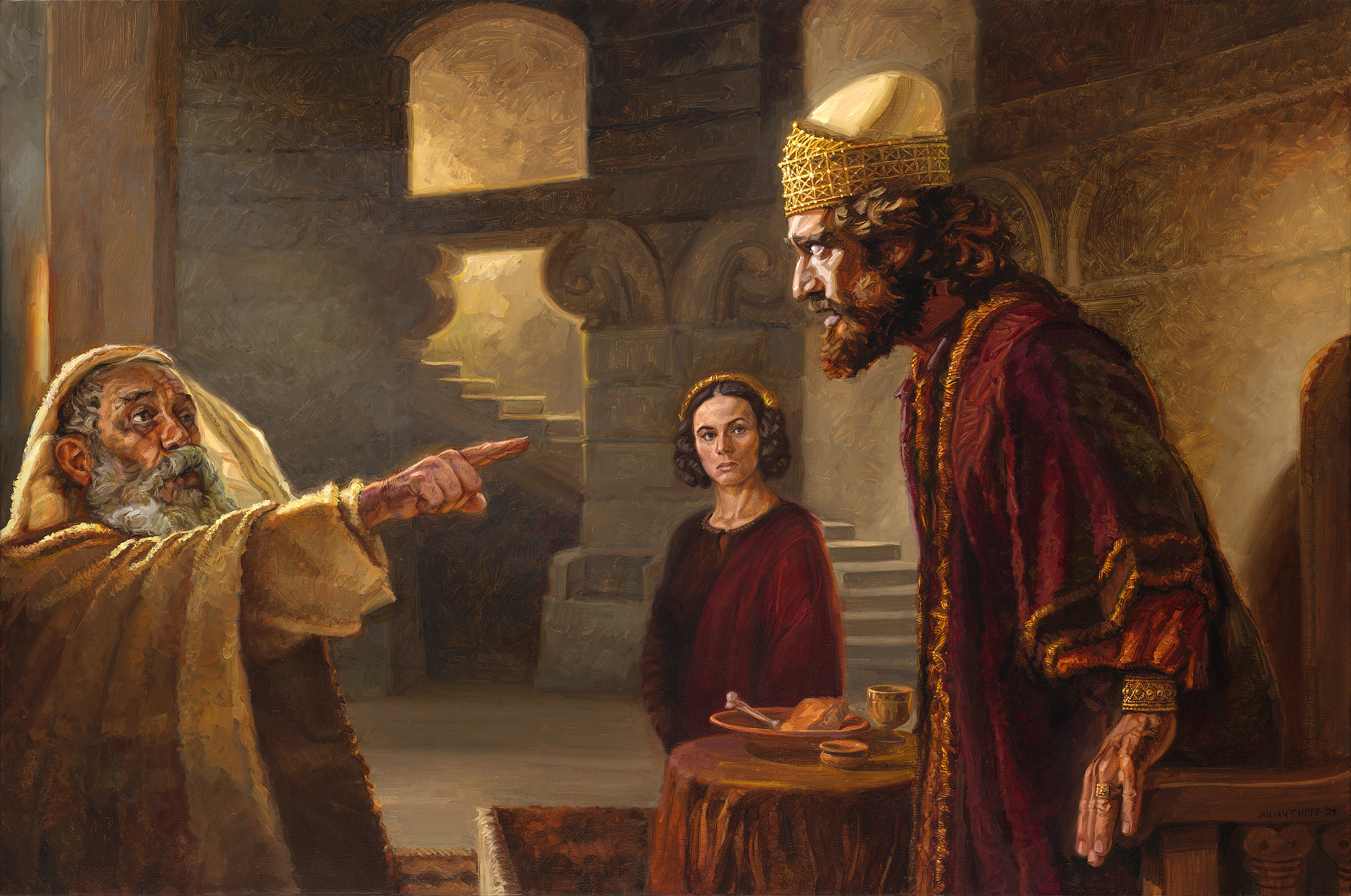 Prorok Natan przychodzi do pałacu Dawida i przedstawia mu sprawę. (Król czasami działał jako sędzia.) Gdy Natan opowiada historię o bogatym i biednym człowieku, Dawid płonie gniewem na widok bogatego człowieka. Wydaje osąd nad nim, wzywając Imię Boże. Wtedy okazuje się, że historia Natana jest proroctwem w formie przypowieści; “bogatym człowiekiem” w opowieści jest sam Dawid; “Ty jesteś tym mężem!” Następnie Natan przemawia do Dawida w Imieniu Bożym i oskarża go o niewdzięczność, niewierność i nieposłuszeństwo. Opowiada, jaka będzie kara za jego grzechy. Grzechy były popełniane potajemnie, ale kara za grzech będzie publiczna.