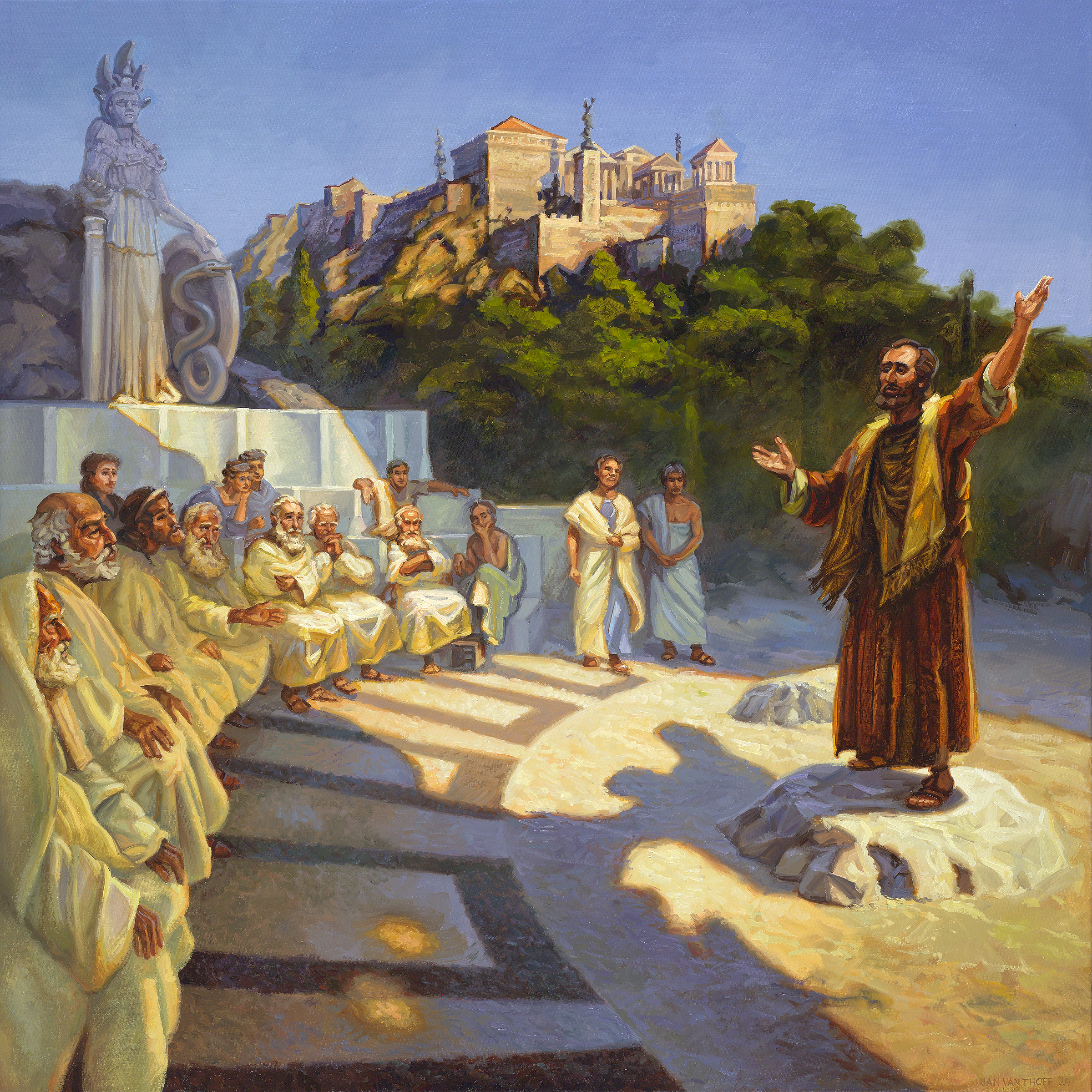 Paweł zauważył, że miasto jest pełne posągów bożków. Jest tam również ołtarz z napisem: “Nieznanemu Bogu”. Paweł