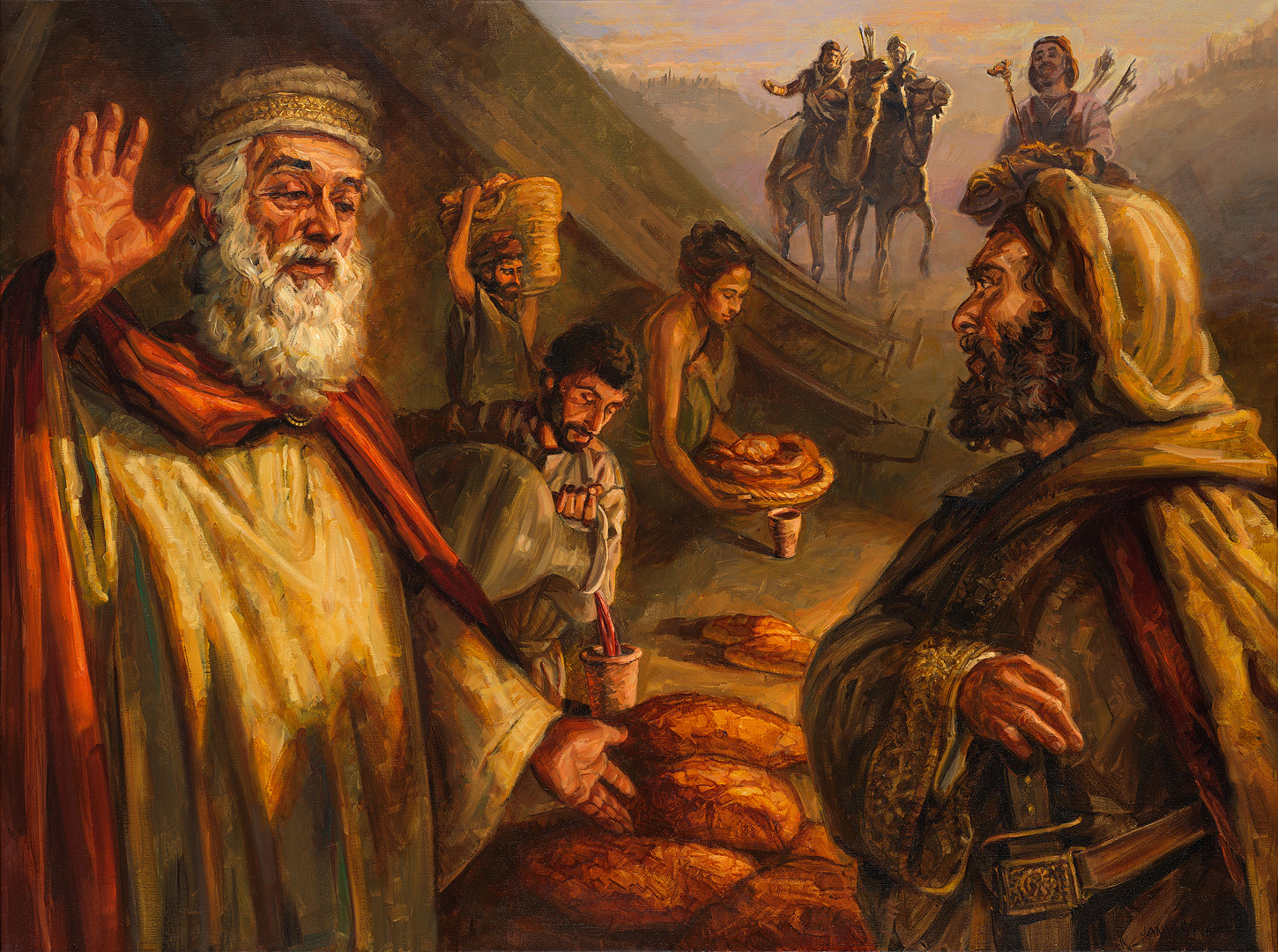 powrocie z wyprawy wojennej Melchizedek, (“król sprawiedliwości”) król Salemu, wychodzi mu na spotkanie z chlebem