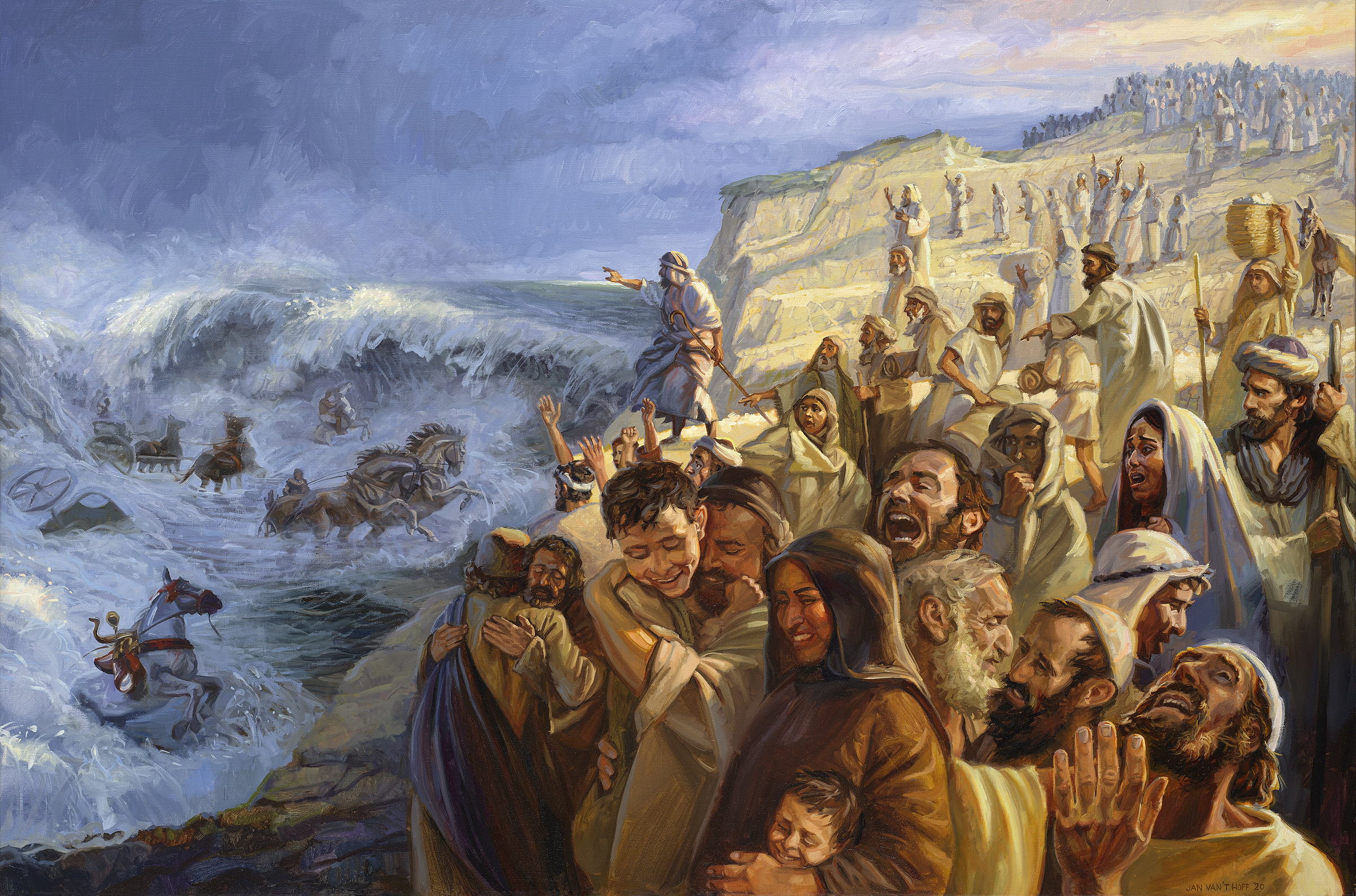 Izraelici znajdują się w trudnej sytuacji, ponieważ przed nimi jest Morze Czerwone, a egipska armia zbliża się od tyłu.